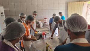 Durante a capacitação, os participantes colocaram literalmente a mão na massa, aprendendo a produzir pães, donuts, sonhos, pizzas, salgados, o tradicional doce da região “nego bom” e diversos tipos de doces. Mais do que receitas, eles experimentaram o sabor da superação e a alegria de criar algo com as próprias mãos — um gesto simbólico e concreto de reconstrução de suas histórias.