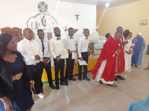 A missa foi presidida pelo padre Christophe, e reuniu familiares e a comunidade local.