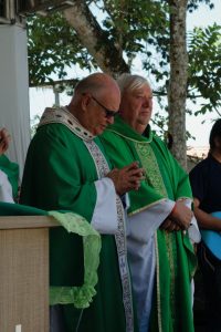Um dos momentos mais especiais foi a presença dos fundadores da Fazenda da Esperança— Frei Hans Stapel, Nelson Giovanelli, Luci Rosendo e Iraci Leite— que celebraram junto à comunidade local essa trajetória transformadora. Também estiveram presentes Angelucia Moura (presidência da Família da Esperança), Juliana Nogueira (presidência da Família da Esperança) e Daniela Arruda (regional das Fazendas Sul). A Santa Missa, presidida por Frei Hans, que em sua homilia, falou sobre o carisma e a missão da Fazenda: recuperar vidas por meio do trabalho, da convivência e da espiritualidade.