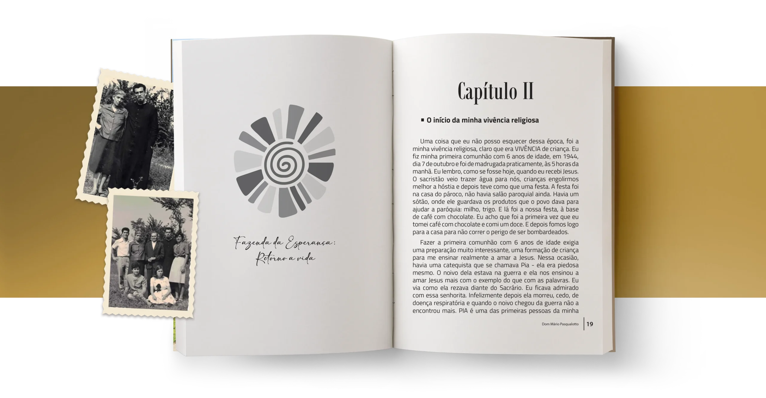 Sou Dom Mário Pasqualotto, bispo emérito de Manaus e missionário do PIME. Esta biografia compartilha um pouco da minha caminhada como cristão, missionário e bispo, vivida na espiritualidade da comunhão. Sempre resisti a escrever sobre mim, pois acreditava que minha história estava viva nas pessoas. Mas, em oração, entendi que partilhar também é vontade de Deus. O que relato aqui não é “meu” — tudo pertence a Ele. Minha vida foi marcada pela família, paróquia, PIME, Movimento dos Focolares e, de modo especial, pela Fazenda da Esperança. Tudo isso me conduziu por um caminho de cruz, luz e gratidão, unido por um fio de ouro: o amor de Deus.