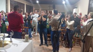Foram dois dias intensos de oração, louvor, escuta da Palavra e partilha fraterna, onde os acolhidos também puderam vivenciar o encontro. A programação iniciou com a chegada dos participantes, em seguida iniciou a oração de entrega. A primeira pregação trouxe o tema “Fogo sobre a Terra”, que foi conduzida por Arnaldo. Logo depois, Alexandre conduziu a reflexão “O Amor de Deus derramado em nossos corações pelo Espírito Santo”, com momento de deserto e oração. Izabela partilhou sobre “Pentecostes: antes e depois”. O período da tarde seguiu com animação, oração mariana e a quarta pregação de Alessandra sobre o “Batismo no Espírito Santo”. O primeiro dia foi encerrado com um forte momento de adoração ao Santíssimo Sacramento.