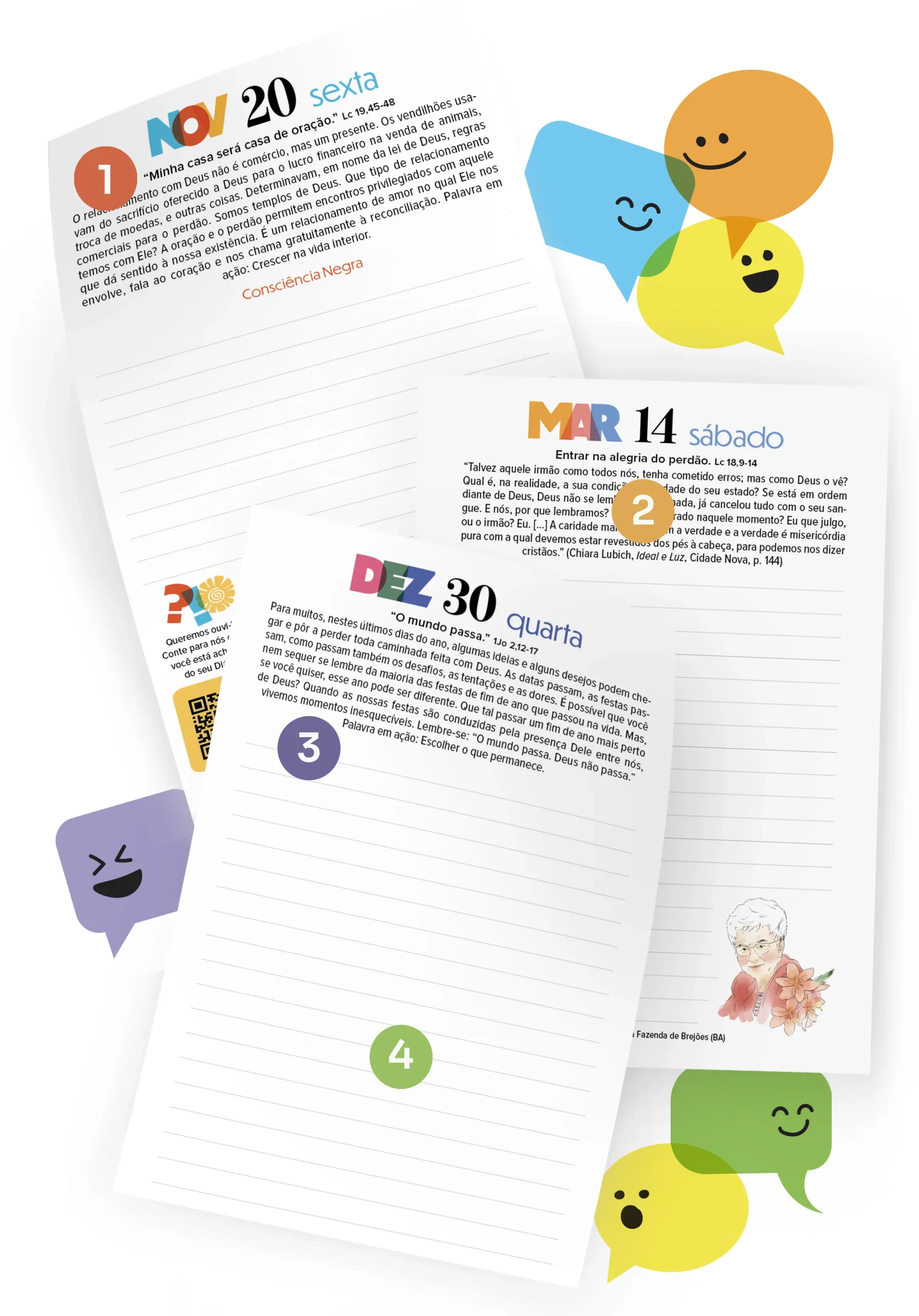 Utilizar ilustrações exclusivas valoriza e honra a beleza e a profundidade da jornada espiritual de cada um, tornando o diário agradável e inspirador.