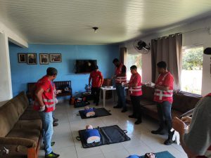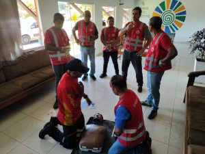 A capacitação contou com a participação de alguns acolhidos, que puderam receber instruções práticas e teóricas sobre prevenção, combate a incêndios, evacuação de ambientes e primeiros socorros.