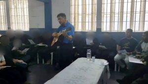 Fundadores da Fazenda da Esperança, junto com seminaristas, compartilham suas experiências de vida e levam a esperança viva para os internos