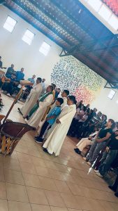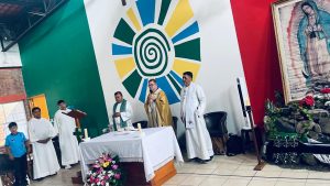 A missa foi presidida por padre Valmir e concelebrada pelos padres Raúl da paróquia Santa Clara de Zacoalco de Torres e Carlos Alberto de Villa Corona. Na homilia, padre Valmir recordou a canonização de Carlo Acutis e Pier Giorgio Frassati e que sempre “devemos nos perguntar frequentemente: ‘Senhor, que queres que eu faça?”. Destacou também uma frase de São Carlo Acutis: “A tristeza é olhar para si mesmo, a felicidade é olhar para Deus”, e uma frase de São Pier Giorgio Frassati: “Ao redor dos pobres e doentes vejo uma luz que nós não temos”. Ao final da missa também foi entregue o certificado de conclusão de ano de dois jovens, e Sérgio Navarro, que recebeu o envio para a Escola Oásis no Brasil.