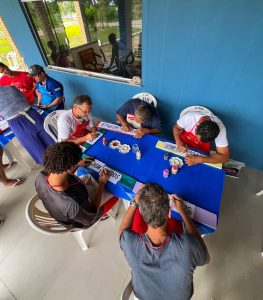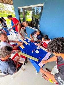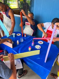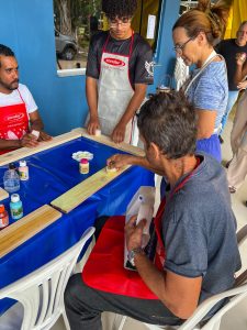 A comunidade participou de uma Oficina de Artes, promovida pelos alunos do Curso de Administração da Universidade Federal de Sergipe (UFS), em parceria com o Grupo Vivarte e a Eldorado Casa da Arte. A atividade foi conduzida pelos instrutores Acácia e Roberto, que compartilharam técnicas, inspirações e experiências com os acolhidos.