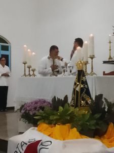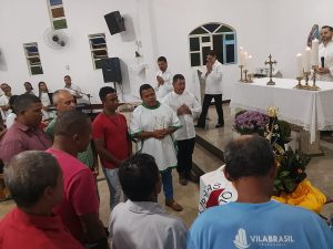 Acolhidos da Fazenda da Esperança São Leopoldo Mandic, em Berizal (MG), estiveram presentes na celebração do tríduo em honra a Nossa Senhora Aparecida, realizada na Paróquia São Sebastião, também em Berizal.