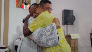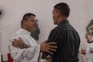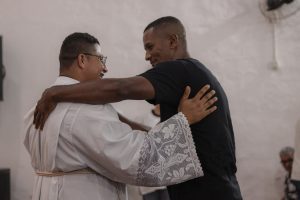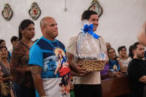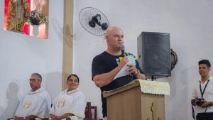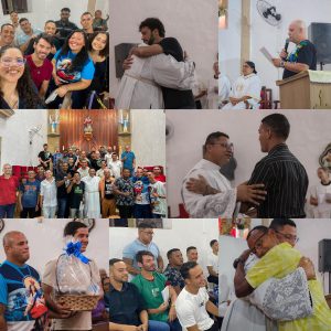 Antes da missa, o Irmão Erick recebeu com carinho os acolhidos, oferecendo-lhes um jantar especial como sinal de amizade e fraternidade. Em seguida, a celebração foi presidida pelo pároco da paróquia, Pe. José Romualdo.