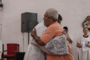 Durante a Santa Missa, os acolhidos prestaram uma emocionante homenagem ao Irmão Erick, expressando sua profunda gratidão por todo o bem que ele tem proporcionado à obra.